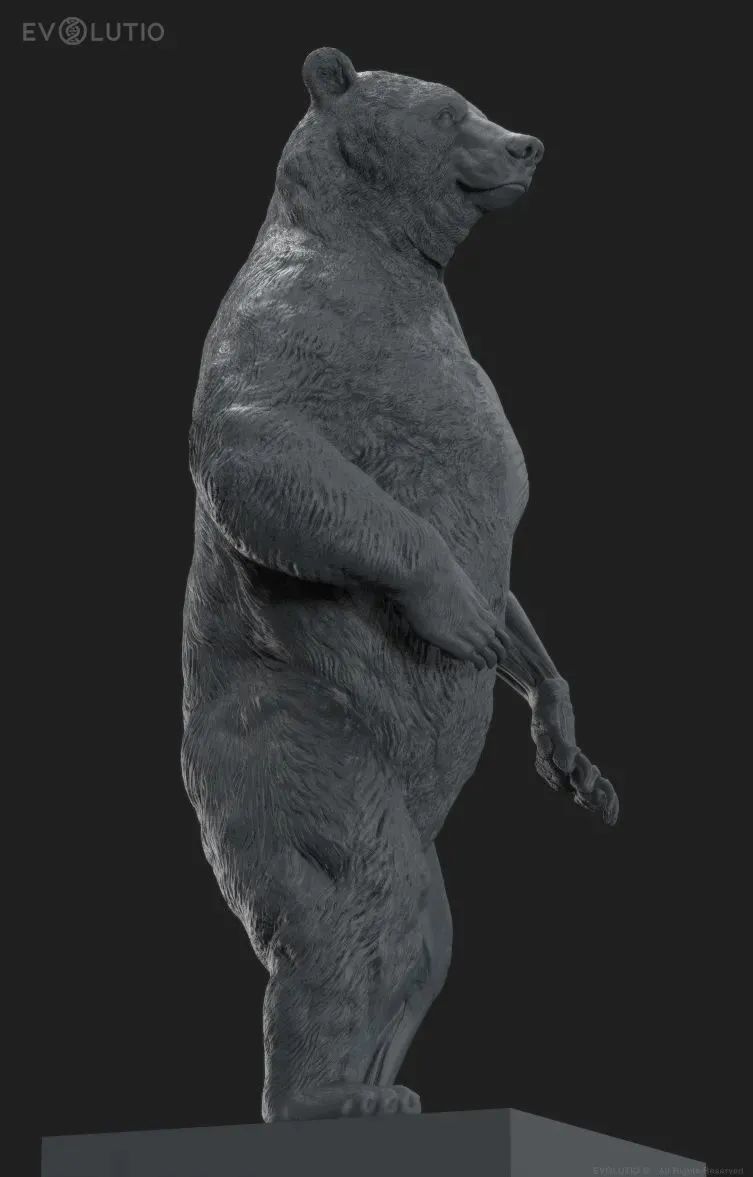 이 시리즈에 나오는 곰으로 예를 들면 곰은 보통 발로 천천히 걷지만 먹이를 쫓을 때에는 뒷다리로 똑바로 설 수 있습니다. 예술가는 곰의 직립 자세를 이용하여 근육질의 선으로 곰의 체격의 강인함을 충분히 보여주었습니다.
