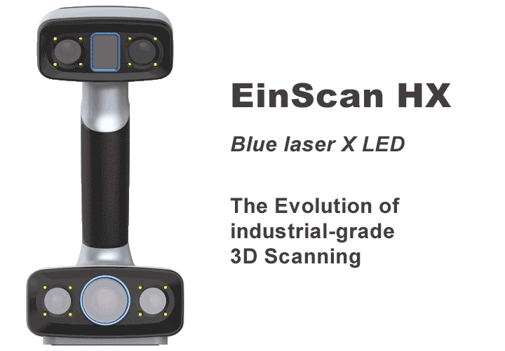 EinScan H and EinScan HX Hybrid Light source Handheld 3D Scanners innovatively integrate the proven EinScan LED light scanning technology with a second light source predestining the devices for a broader range of challenging applications.